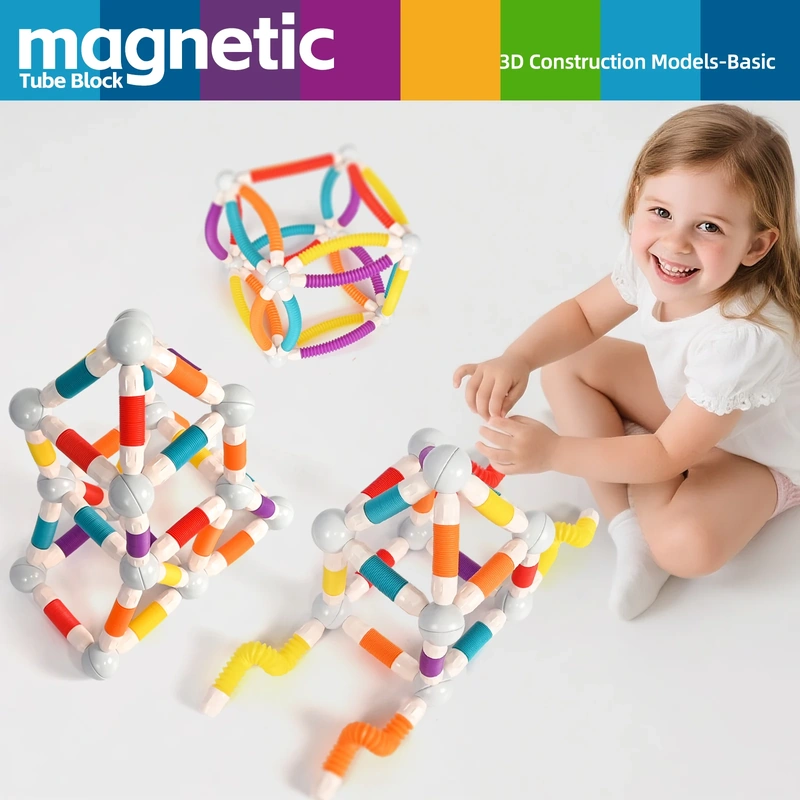 Playing with magnetic building blocks helps children strengthen their fine motor skills, hand-eye coordination, and spatial reasoning abilities, while the open-ended nature of construction play encourages creative thinking and problem-solving that benefits them in school and beyond.