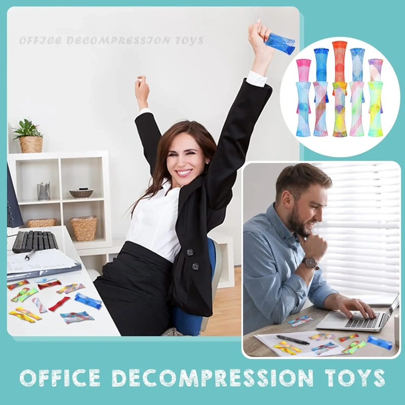 These marble mesh fidgets feature a small marble encased in a flexible tube that you can push back and forth with your fingers, creating a smooth rolling sensation that provides satisfying tactile stimulation for stress relief and focus improvement.
