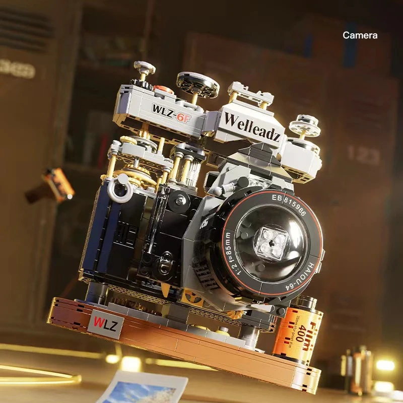 I designed this retro camera building block set to capture every beautiful detail of classic film cameras from the textured body panels to the realistic lens assembly and viewfinder making it a true conversation piece for any photography enthusiast or vintage collector.